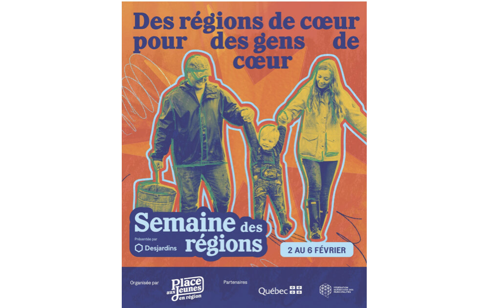 Pour mettre en lumière les régions du Québec et les perspectives professionnelles qu’elles offrent aux jeunes âgés de 18 à 35 ans, l’initiative « Place aux jeunes en région » lance la 15e édition de la Semaine des régions (SDR) 2026. Présentée par Desjardins et sous le thème « Des régions de cœur, pour des gens de cœur », cet événement qui se tiendra du 2 au 6 février mobilisera plusieurs agents aux quatre coins du Québec.
